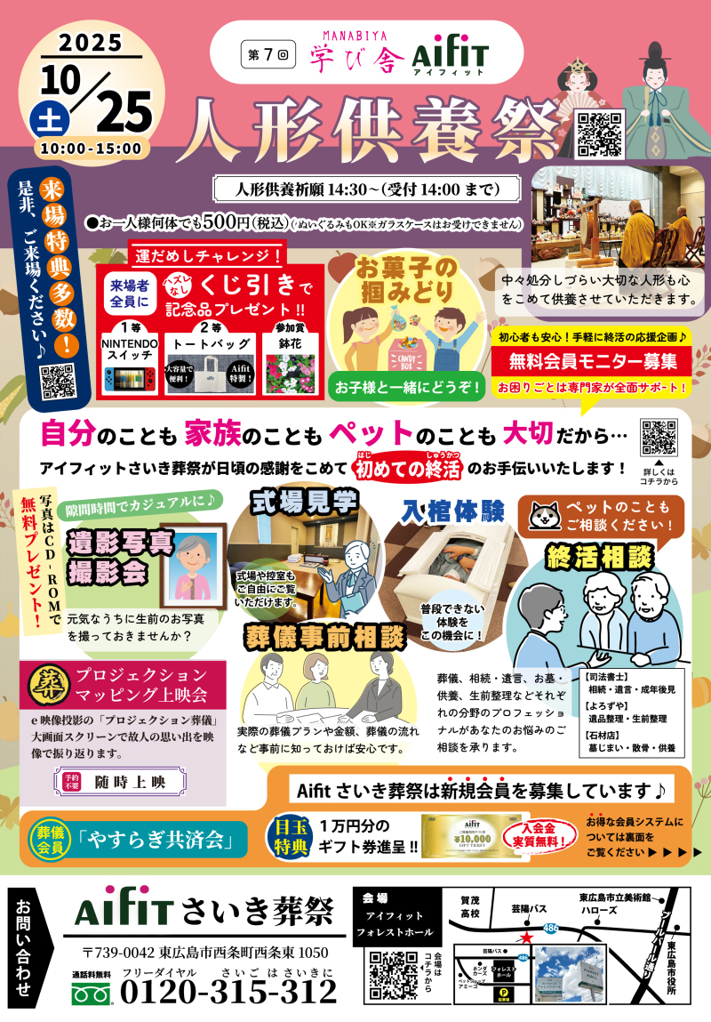 7回目の【学び舎アイフィット】は人形供養祭を行います。