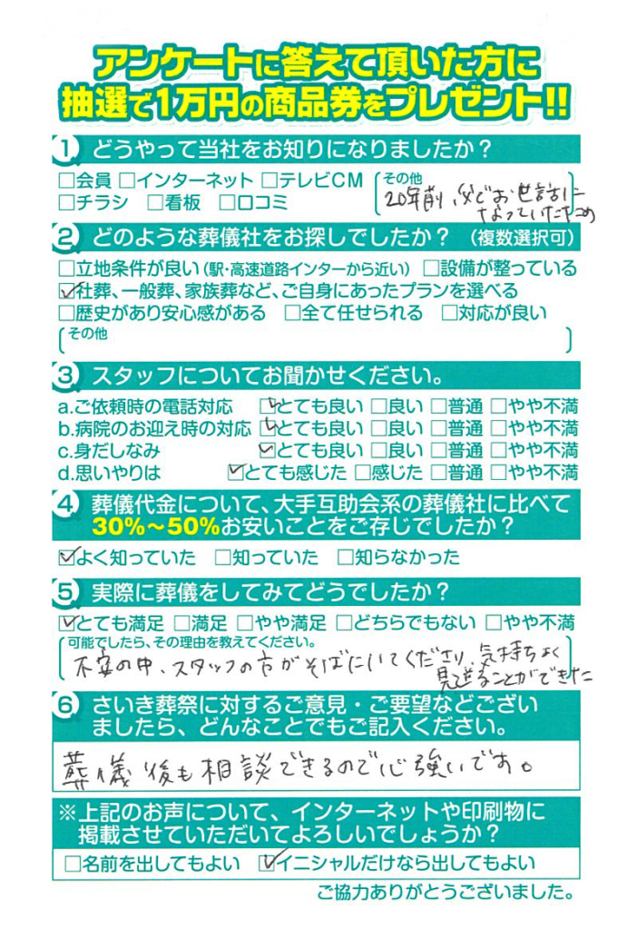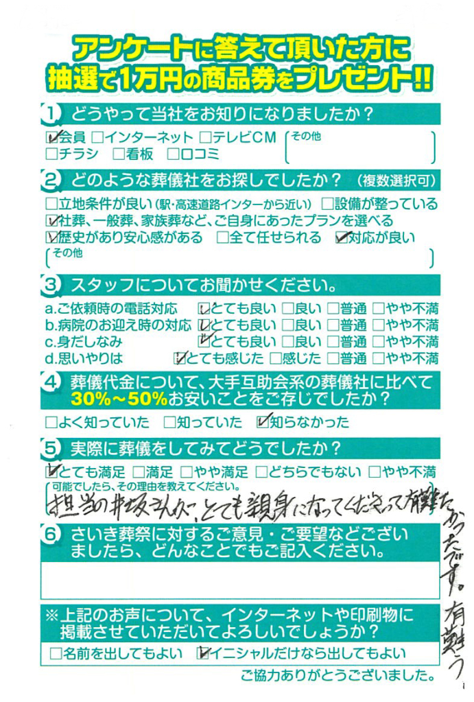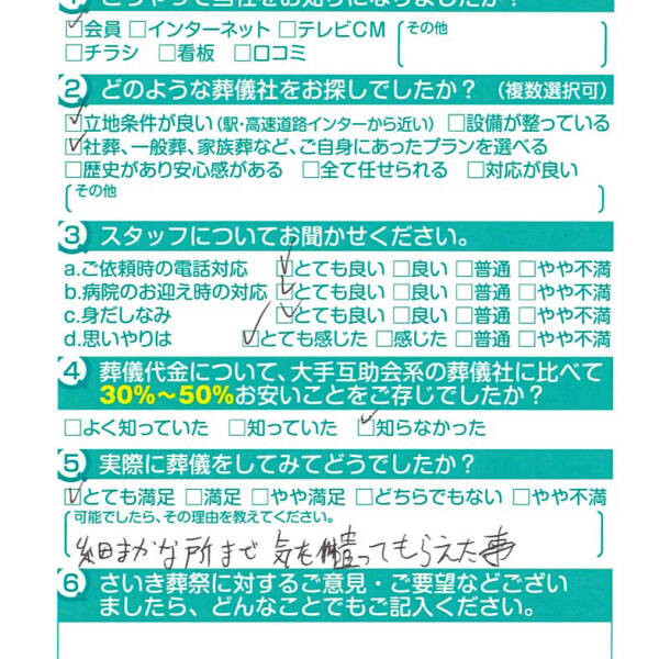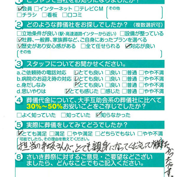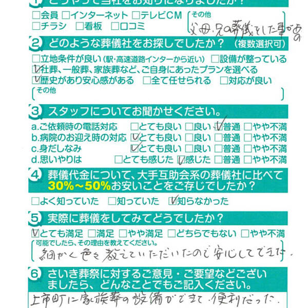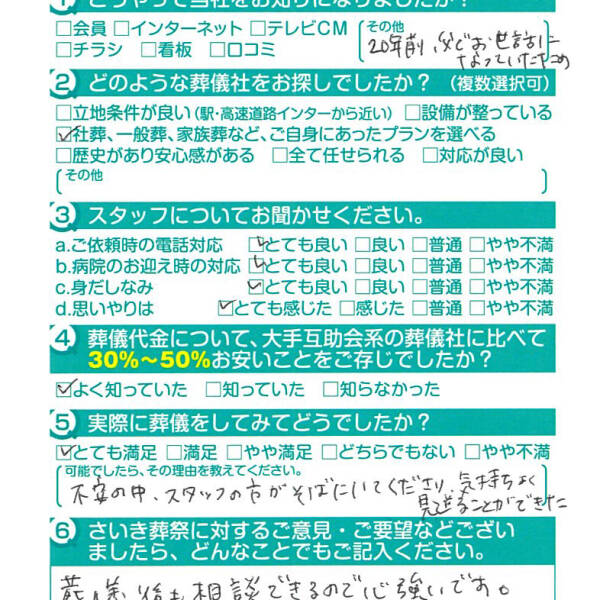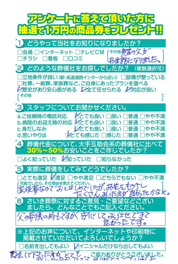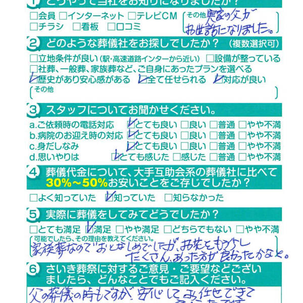 父の葬儀の時もですが安心してお任せできて良かったです。