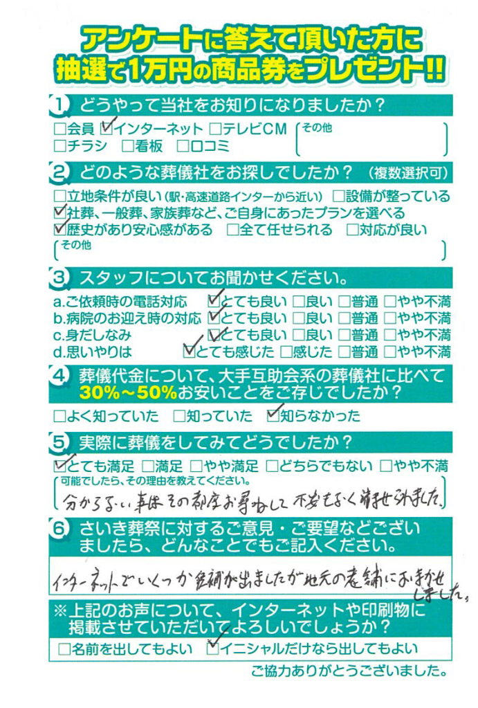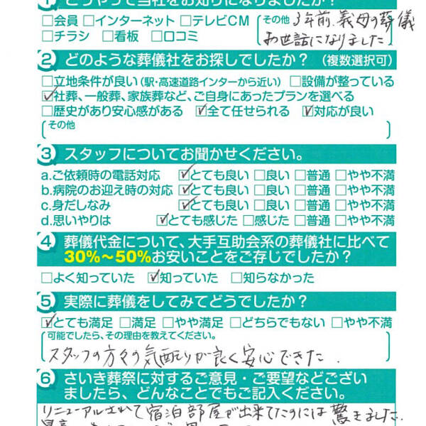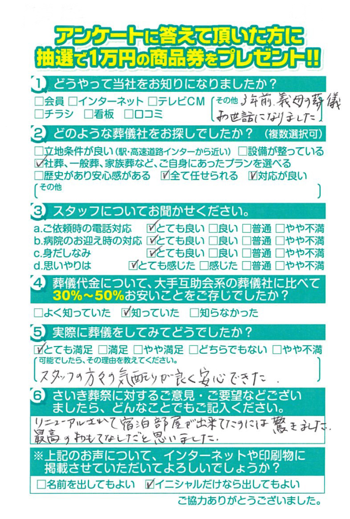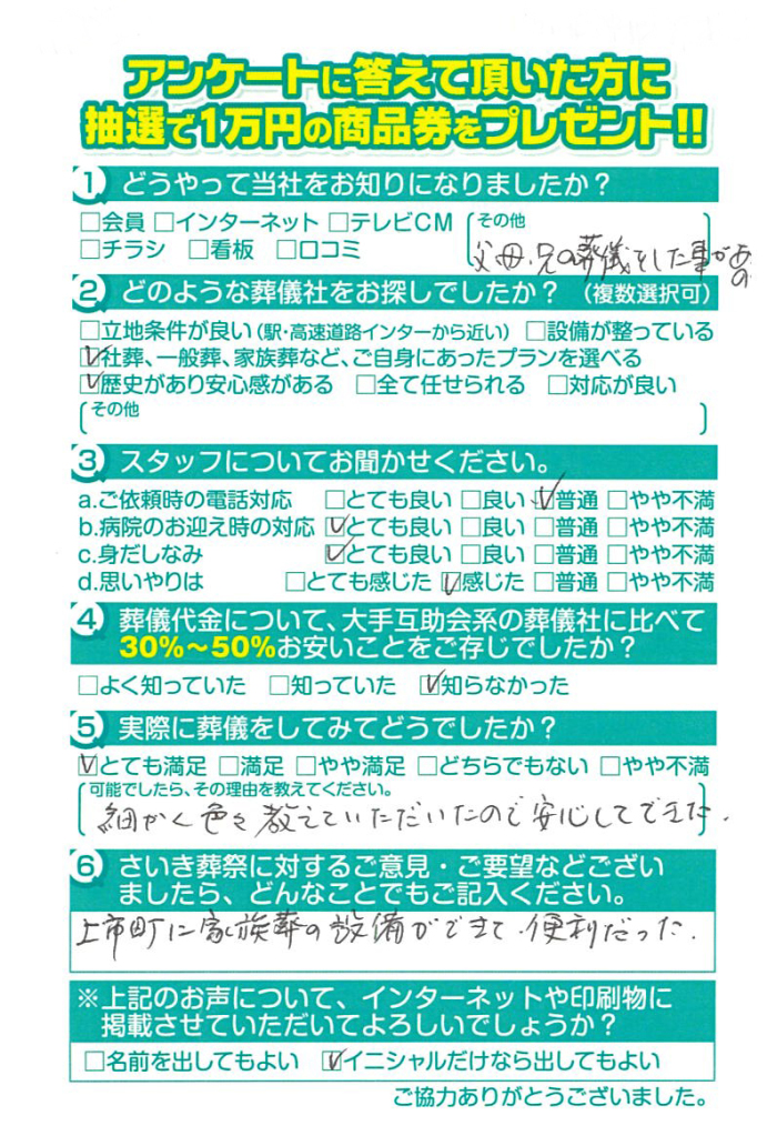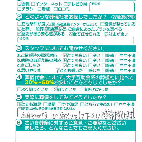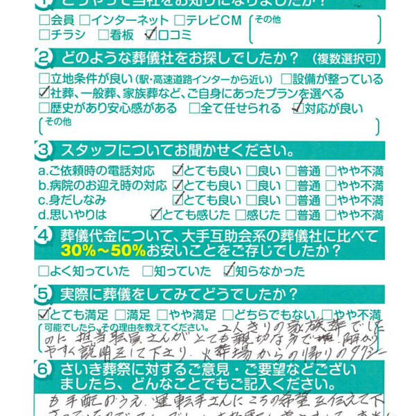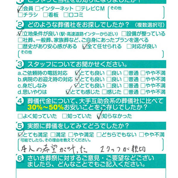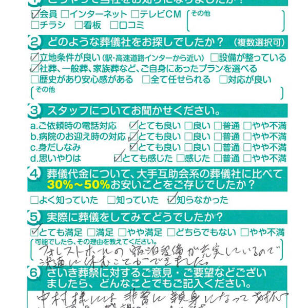父の葬儀の時もですが安心してお任せできて良かったです。