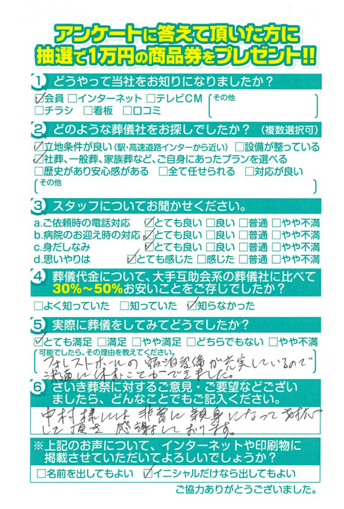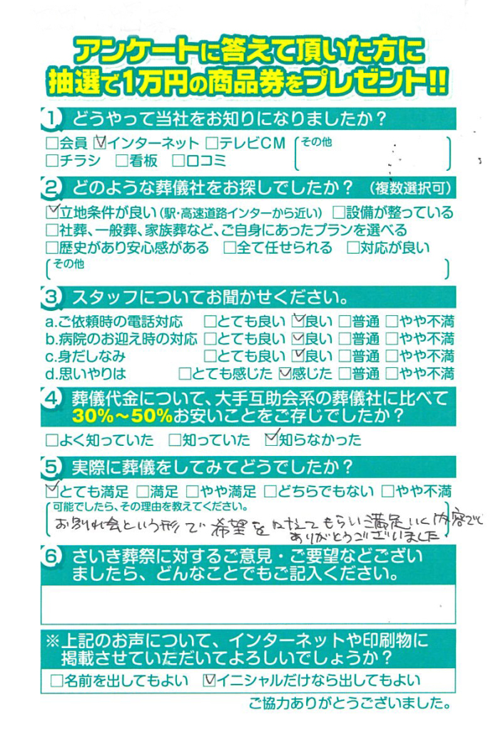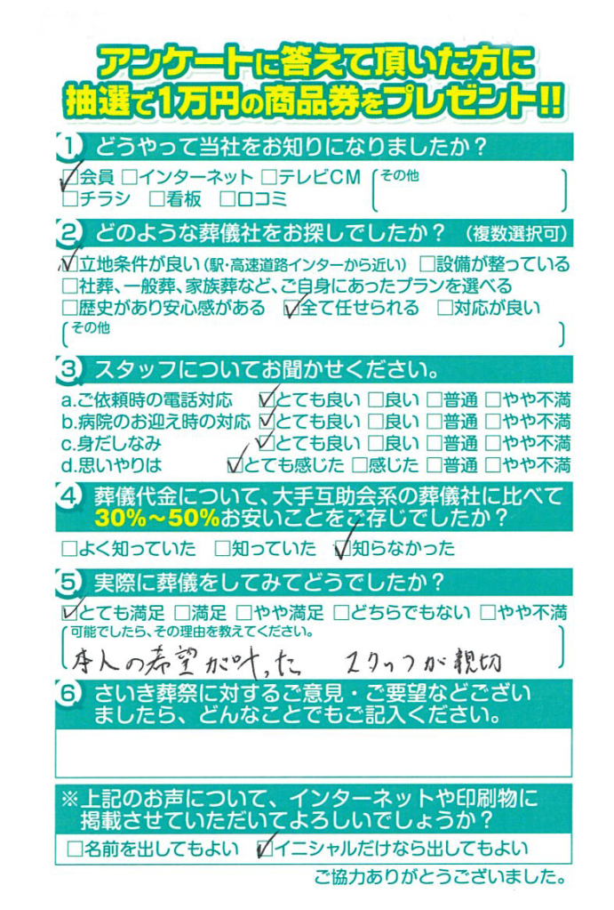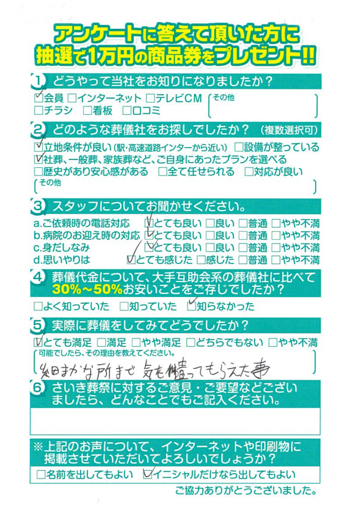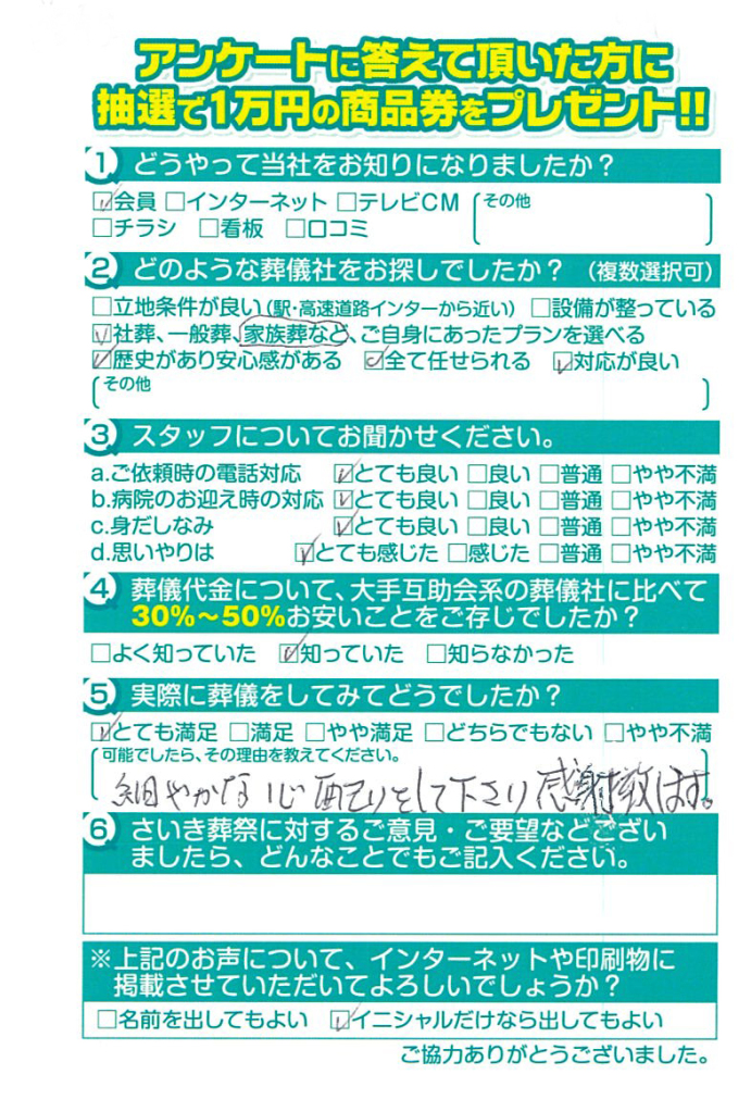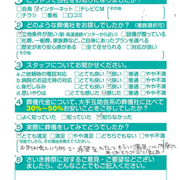 お別れ会という形で希望を叶えてもらい満足いく内容でありがとうございました。