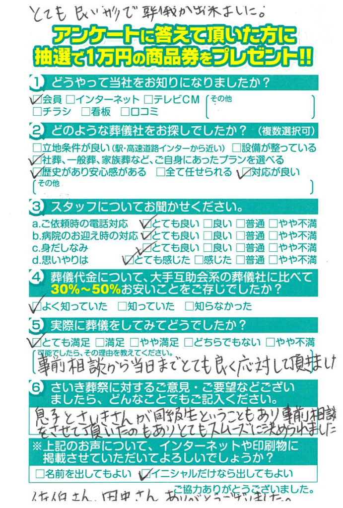 事前相談から当日までとても良く対応して頂きました。